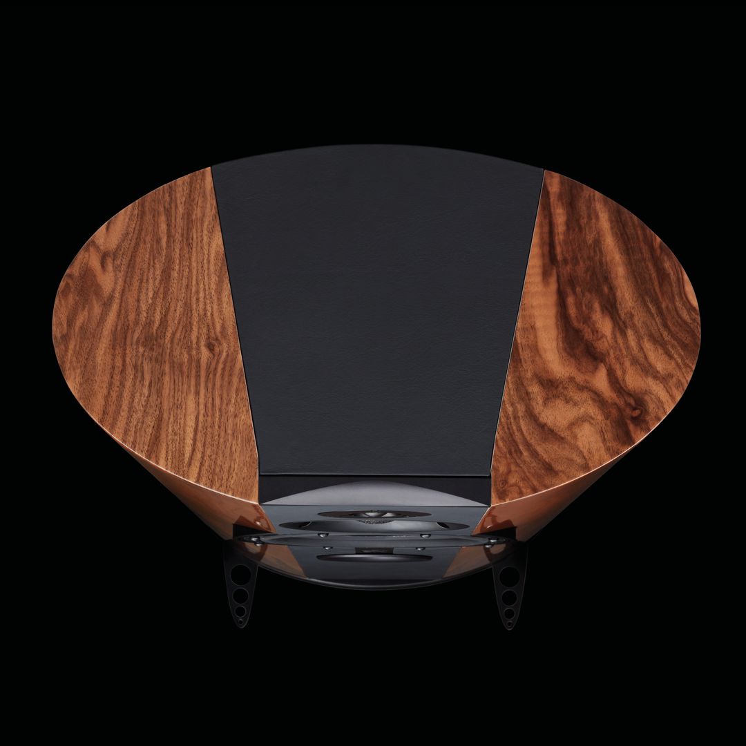 גימור מהודר של פורניר אגוז אירופאי שנבחר ומותאם ידנית, בשילוב אלמנטים מאבוני ופאנלים מרופדי עור נאפה סביב יחידות המיד והטוויטר, מעניקים לרמקול נוכחות אלגנטית אך מאופקת – כזו שמשתלבת בחלל מבלי להתפשר על אמירה עיצובית ברורה.
