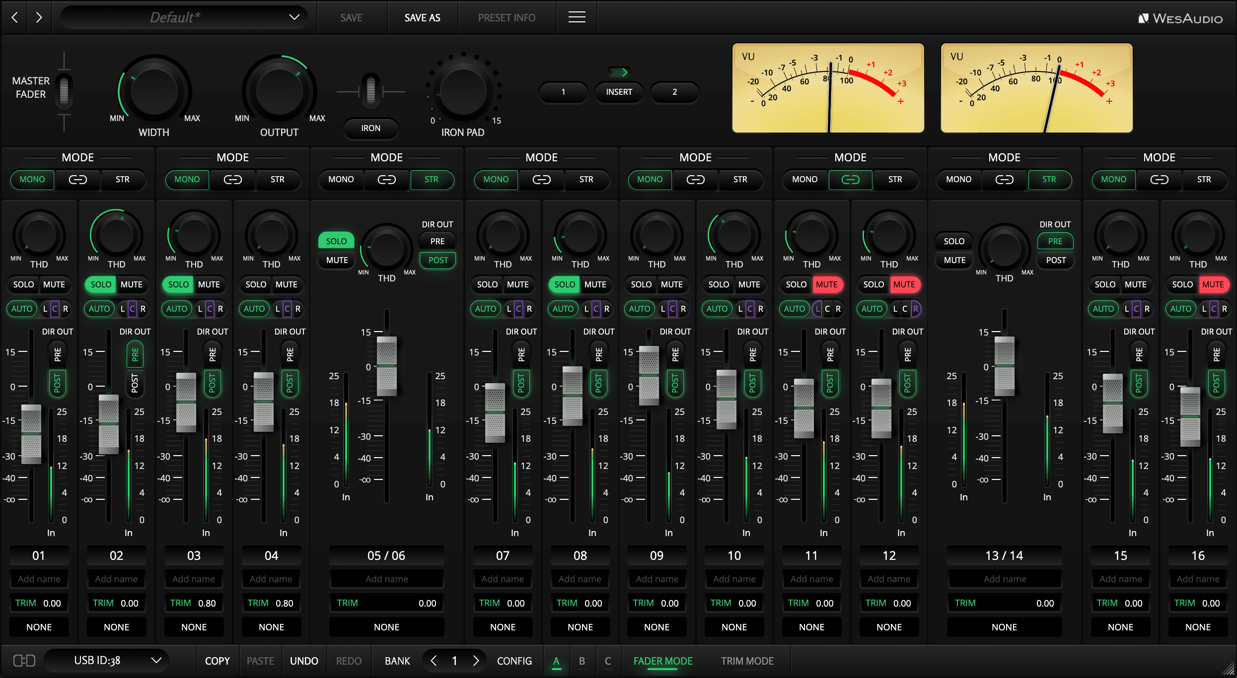 16 הערוצים המרכזיים כוללים שליטה מלאה בעוצמה עם אוטומציה וריקול מתוך ה-DAW, לצד אפשרות לשליטה ב-THD משתנה בכל ערוץ – החל מצלילות נקייה ומדויקת ועד העשרה הרמונית עדינה המוסיפה אופי ועומק. בנוסף, ניתוב LCR לכל ערוץ מאפשר מיקום מדויק במרחב הסטריאופוני ובניית מיקס ממוקד, יציב ומאוזן.